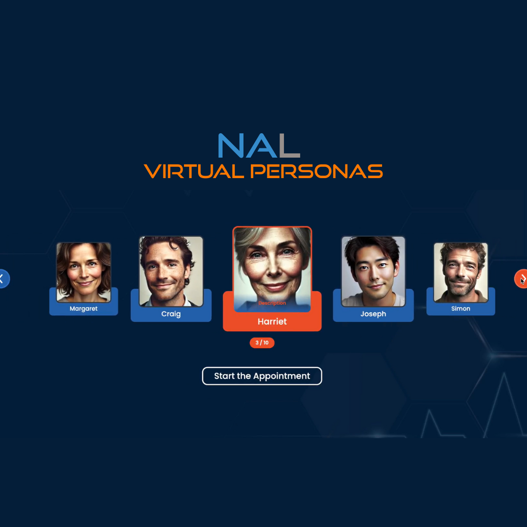 An AI-powered audiology, hearing aid and sales training tool for developing competent and confident communication skills through realistic conversations with proprietary virtual personas.